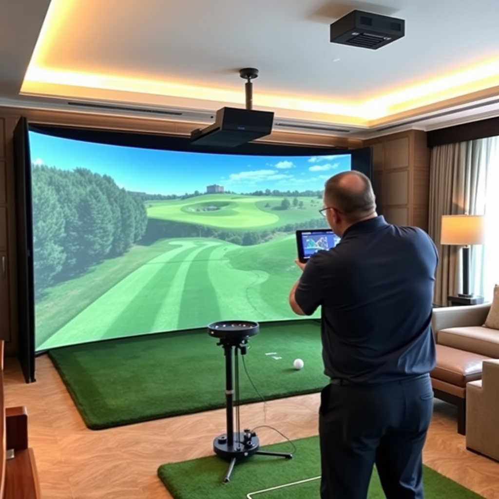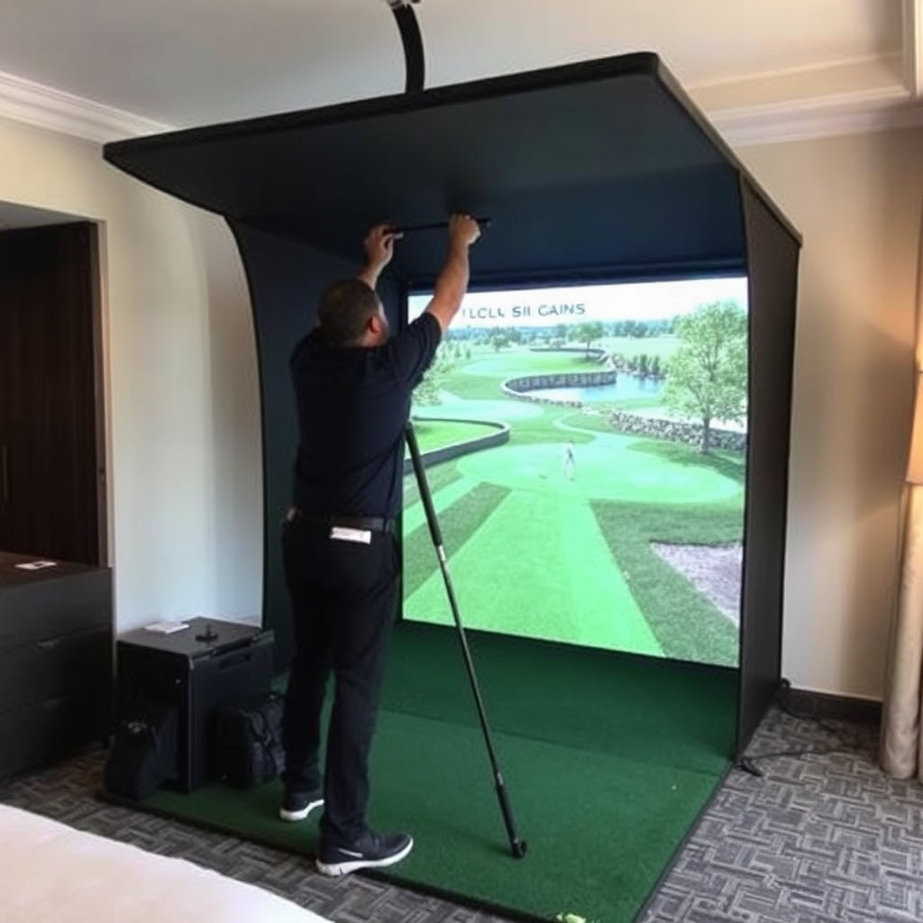 Conception et installation de simulateurs de golf sur mesure pour hôtels et clubs, garantissant une intégration parfaite et une expérience utilisateur exceptionnelle.